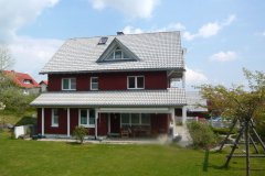 - Gebäude West: Massive Bauweise, hochgedämmte Fassaden + Dach, KFW 60 Standart, Öl-Brennwertheizung, Solare Unterstützung mit 12 m2 zur Brauchwassererwärmung und Heizungsunterstützung, teilweise Fussbodenheizung